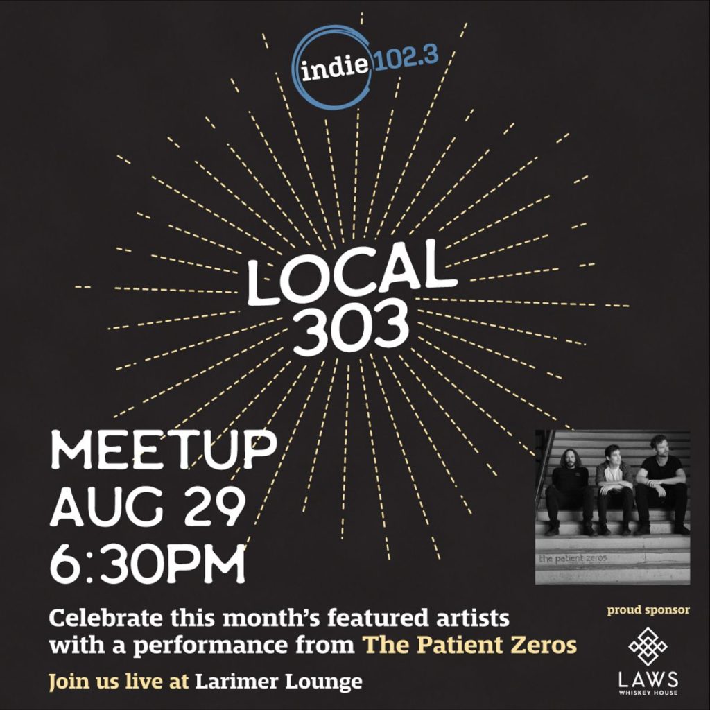 Indie 102.3 Presents Local 303 Meetup (FREE EVENT) — Indie 102.3’s Local 303 Meetup is live and in person on Monday, July 25th at 6:30-9:00p. Details include a live performance from The Patient Zeros! Admission is free and this event is all ages, so get ready to come out of your caves and mingle with some of your favorite Colorado bands and radio hosts!