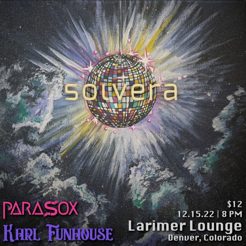 Larimer Lounge Presents Solvera with Parasox and Karl Funhouse on Thursday, December 15. -16+, under 16 admitted with ticketed guardian