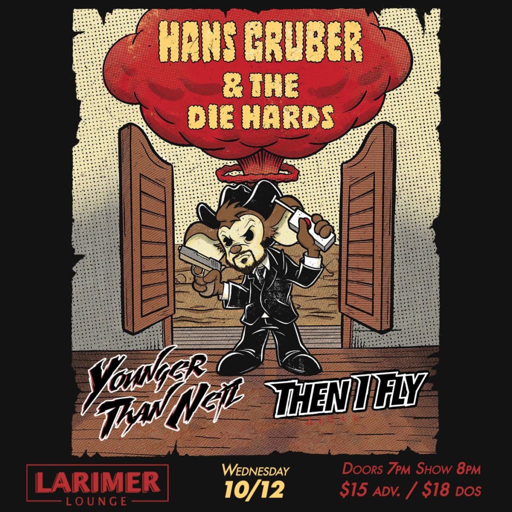 Larimer Lounge Presents Hans Gruber and the Die Hards with Younger Than Neil and Then I Fly on Wednesday, October 12th. -16+, under 16 admitted with ticketed guardian