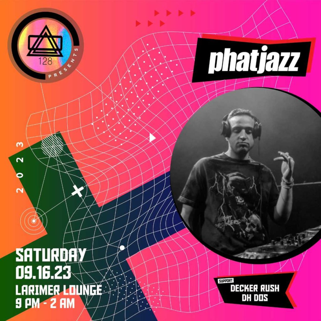 128 Productions presents PhatJazz with Decker Rush and DH Dos on Saturday, September 16 –21+