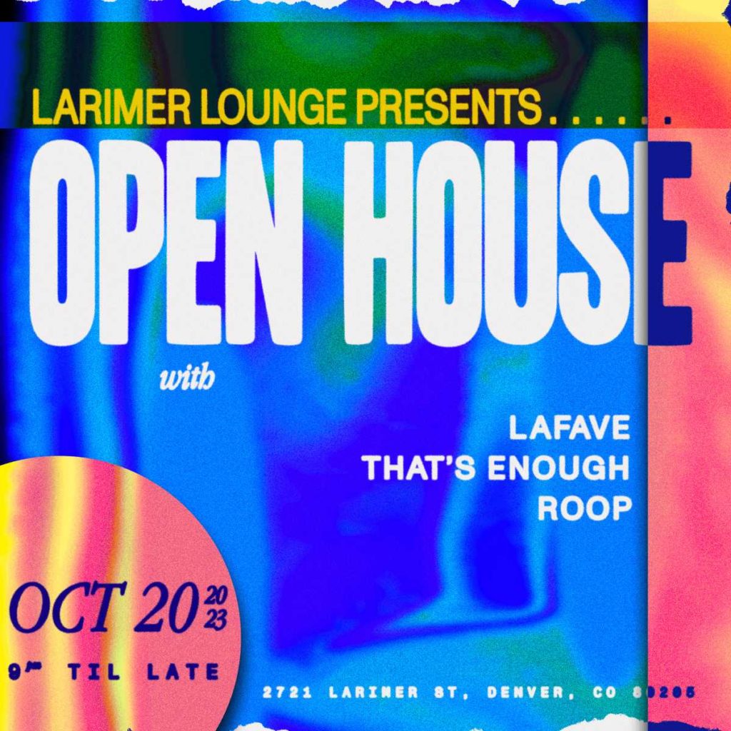 Larimer Lounge Presents Open House with LaFave, That’s Enough and Roop (FREE EVENT) on Friday, October 20th. AGES 21+ SIGN UP FOR OUR OPEN HOUSE SMS LIST: https://larimerlounge.com/openhousesmslist/ Be the first to know about special promos, guest list opps, presale codes, and beyond!