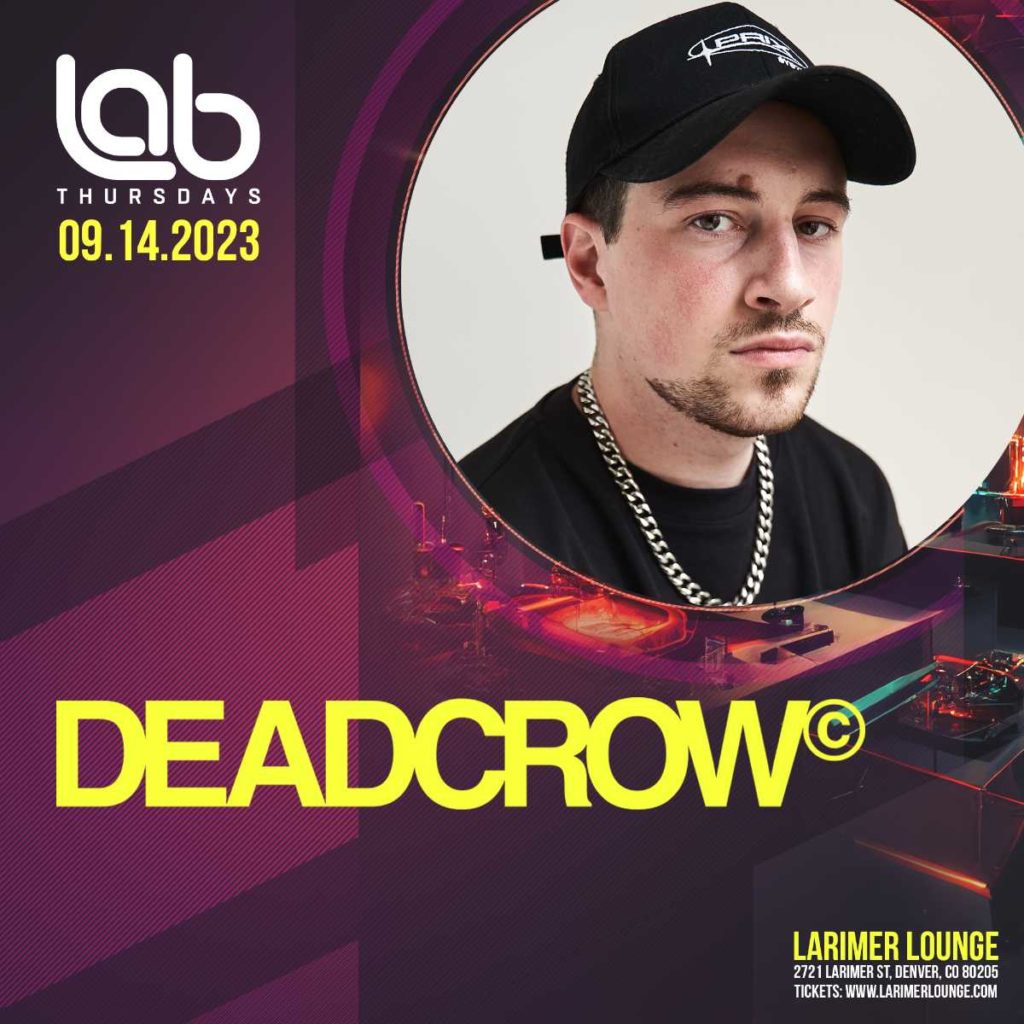 Larimer Lounge presents Lab Thursdays featuring Deadcrow with Kases, Hysteric and Bimyo on Thursday, September 14.-16+, under 16 admitted with ticketed guardian