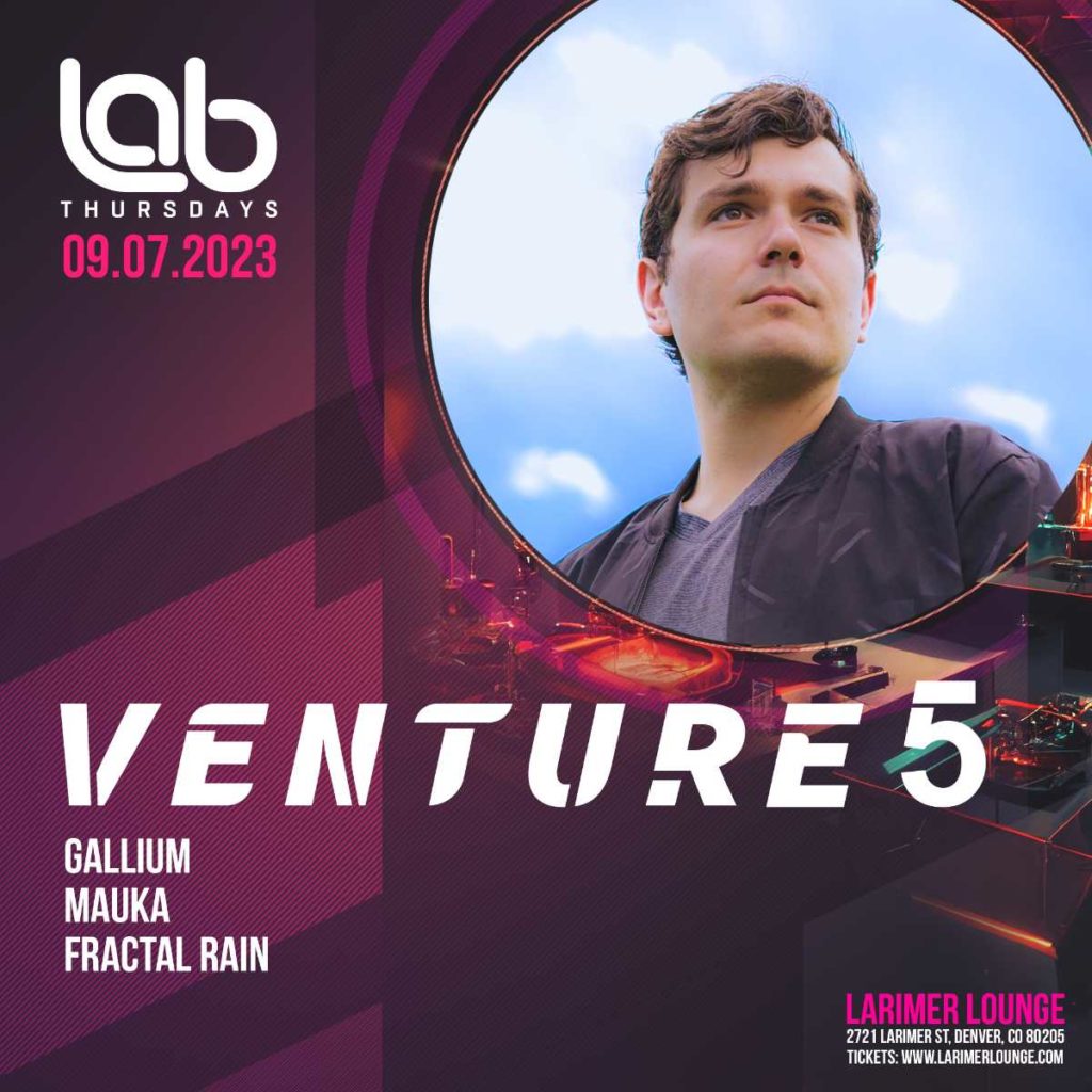 Larimer Lounge presents Lab Thursdays featuring Venture 5 with Gallium, Mauka and Fractal Rain on Thursday, September 7.-16+, under 16 admitted with ticketed guardian