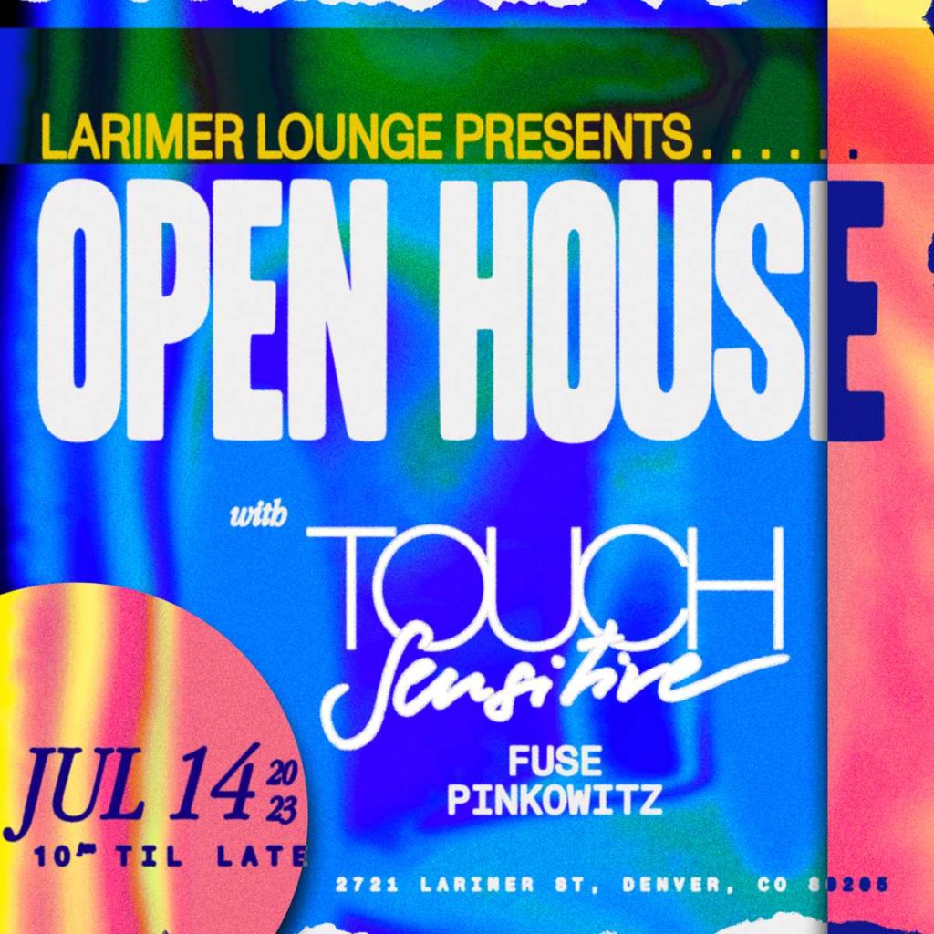 Larimer Lounge presents Open House featuring Touch Sensitive with Fuse and Pinkowitz on Friday, July 14. AGES 21+ SIGN UP FOR OUR OPEN HOUSE SMS LIST: https://larimerlounge.com/openhousesmslist/ Be the first to know about special promos, guest list opps, presale codes, and beyond!