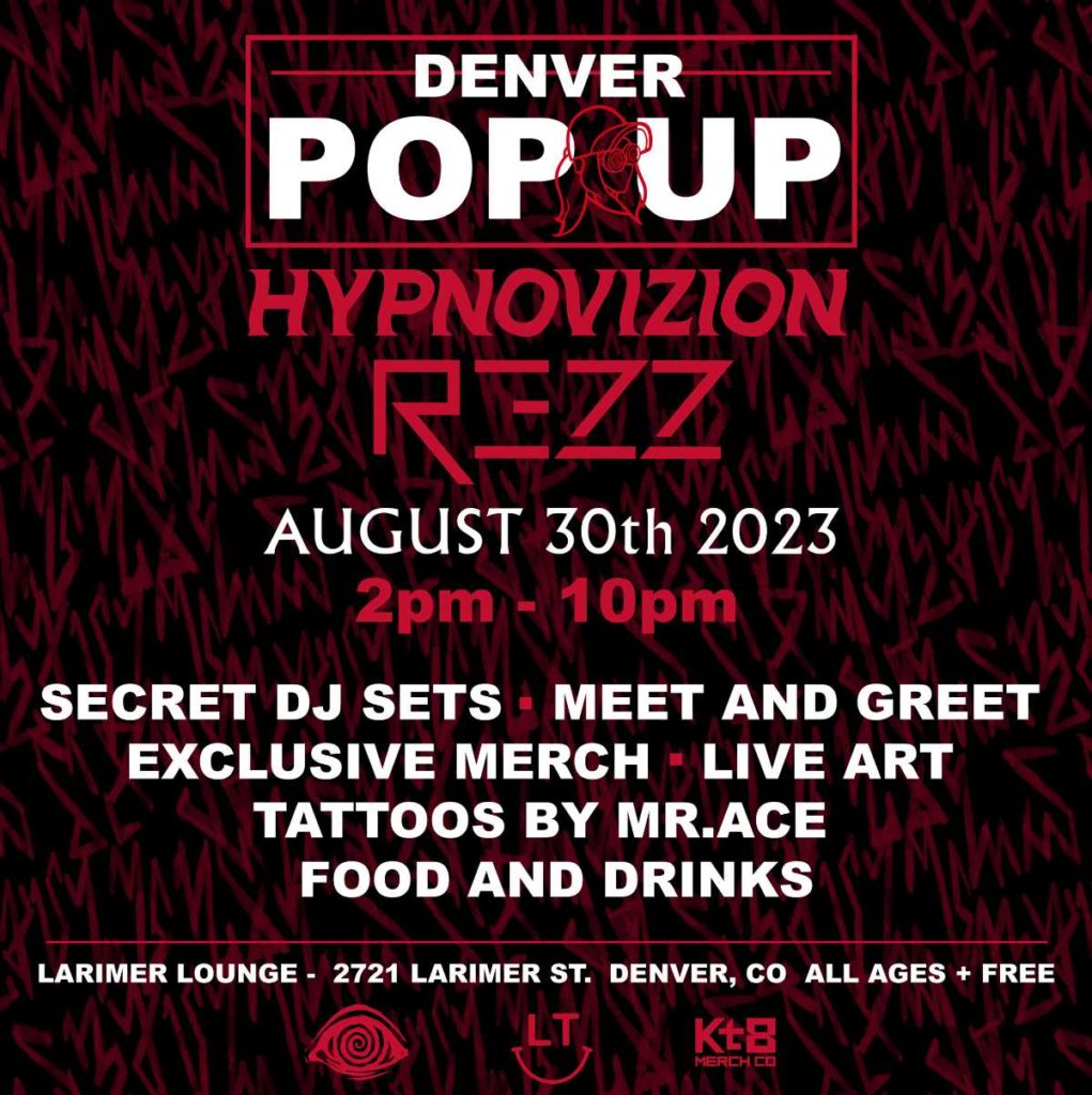 Larimer Lounge presents Rezz Hypnovizion pop-up on Wednesday, August 30! Featuring secret DJ sets, meet and greet, exclusive merch, live art, tattoos by Dr. Ace and food and drinks! 2PM – 10PMThis is an all ages, free event.