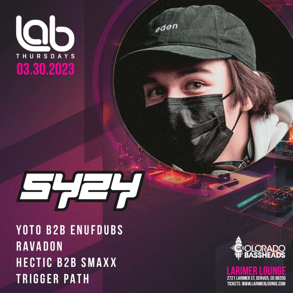 Larimer Lounge Presents Lab Thursdays featuring SYZY with Yoto b2b EnufDubs, Ravadon, Hectic b2b Smaxx and Trigger Path on Thursday, March 30th. -16+, under 16 admitted with ticketed guardian