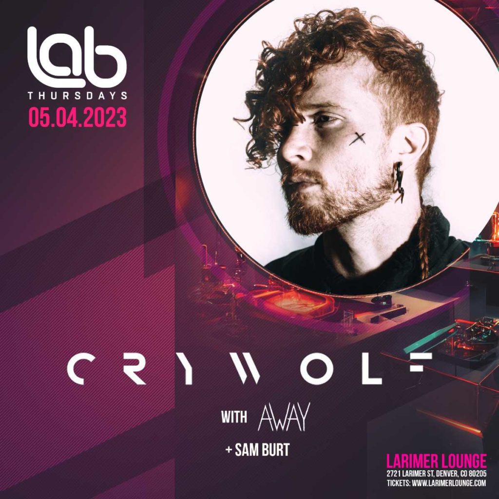Larimer Lounge Presents Lab Thursday with Crywolf featuring AWAY and Sam Burt on Thursday, May 4 —16+, under 16 admitted with ticketed guardian