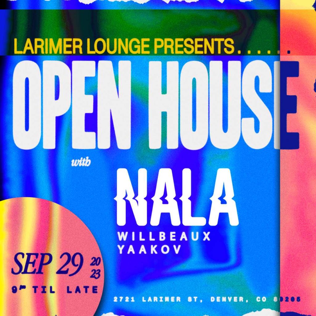 Open House presents NALA with Willbeaux and Yaakov on Friday, September 29 — AGES 21+ SIGN UP FOR OUR OPEN HOUSE SMS LIST: https://larimerlounge.com/openhousesmslist/ Be the first to know about special promos, guest list opps, presale codes, and beyond!