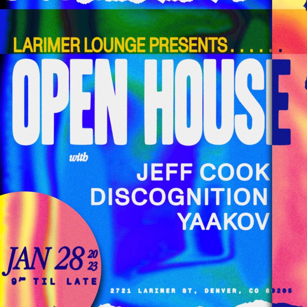 Larimer Lounge Presents Open House Featuring Jeff Cook & Discognition with Yaakov (FREE EVENT BEFORE 11PM) on Saturday, January 28th.AGES 21+ SIGN UP FOR OUR OPEN HOUSE SMS LIST: https://larimerlounge.com/openhousesmslist/ Be the first to know about special promos, guest list opps, presale codes, and beyond!