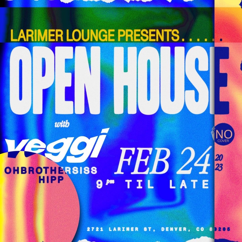 Larimer Lounge Presents Open House with Veggi, ohbrothersiss and Hipp (FREE EVENT BEFORE 11PM) on Friday, February 24th. AGES 21+ SIGN UP FOR OUR OPEN HOUSE SMS LIST: https://larimerlounge.com/openhousesmslist/ Be the first to know about special promos, guest list opps, presale codes, and beyond!