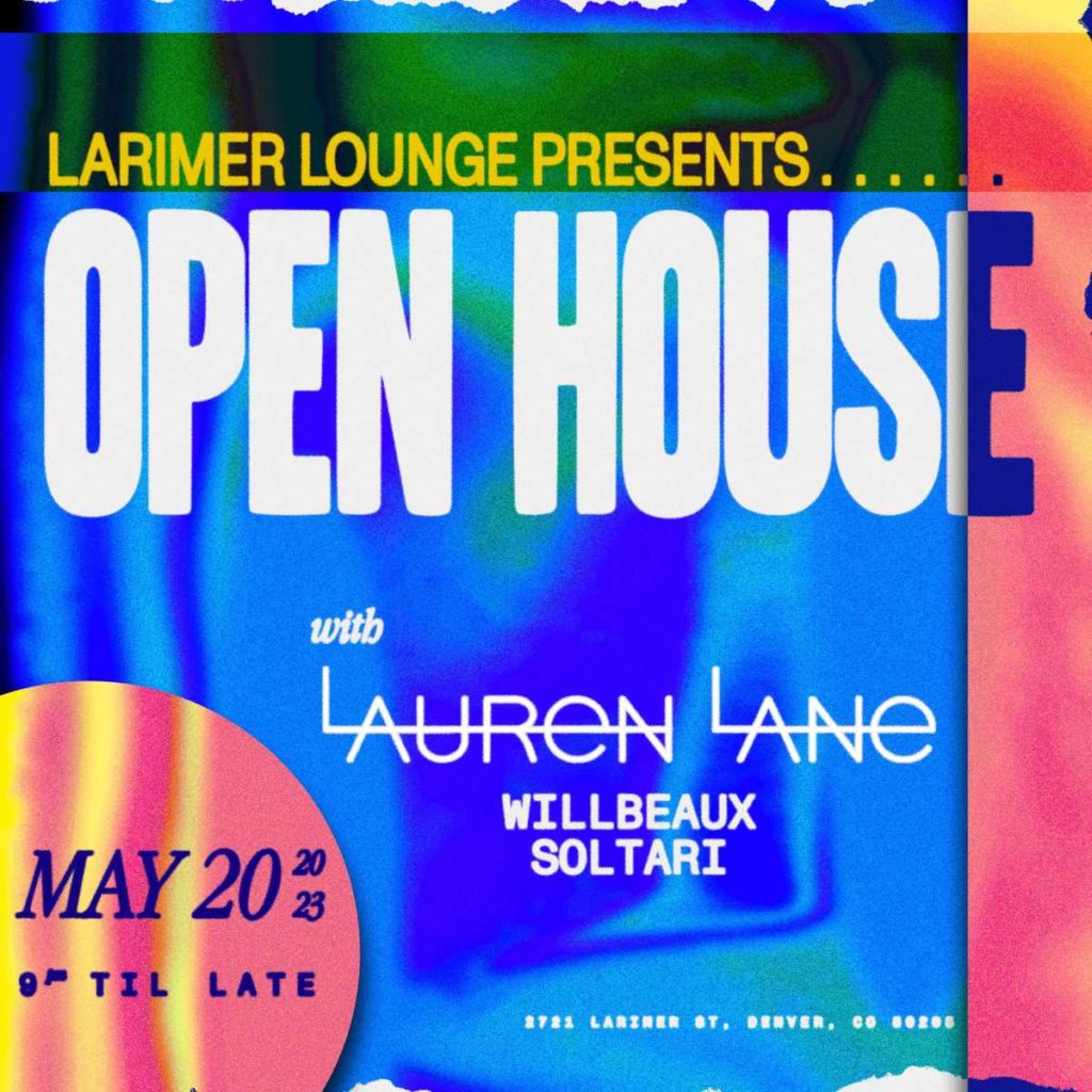 Larimer Lounge presents Open House featuring Lauren Lane with Willbeaux and Soltari on Saturday, May 20. AGES 21+ SIGN UP FOR OUR OPEN HOUSE SMS LIST: https://larimerlounge.com/openhousesmslist/ Be the first to know about special promos, guest list opps, presale codes, and beyond!