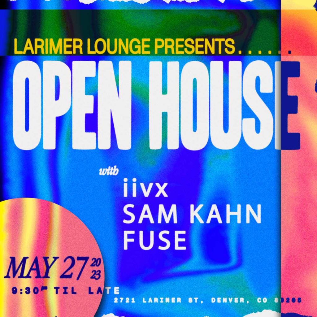 Larimer Lounge presents Open House featuring iivx, Sam Kahn and Fuse on Saturday, May 27. AGES 21+ SIGN UP FOR OUR OPEN HOUSE SMS LIST: https://larimerlounge.com/openhousesmslist/ Be the first to know about special promos, guest list opps, presale codes, and beyond!