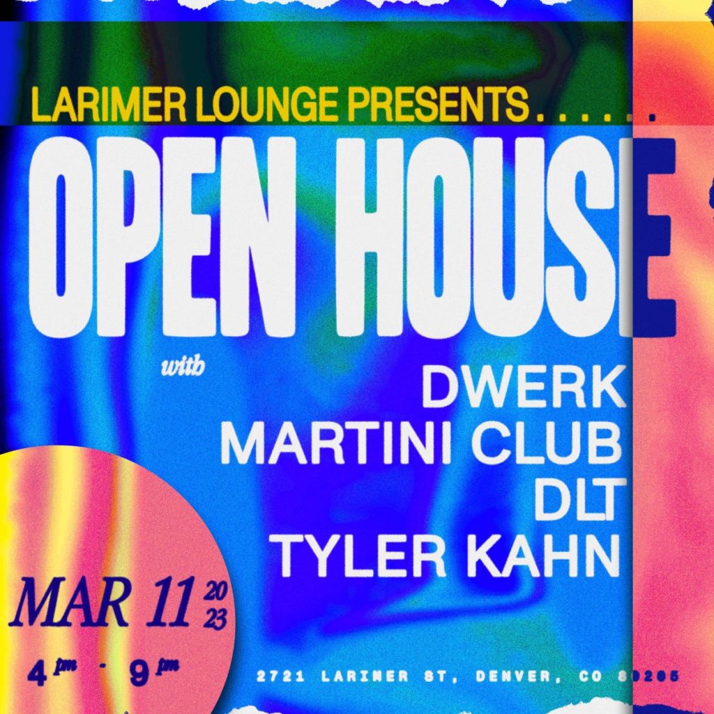 Larimer Lounge Presents Open House (DAY) with Dwerk, Martini Club, DLT and Tyler Kahn (FREE EVENT) on Saturday, March 11th. AGES 21+ SIGN UP FOR OUR OPEN HOUSE SMS LIST: https://larimerlounge.com/openhousesmslist/ Be the first to know about special promos, guest list opps, presale codes, and beyond!