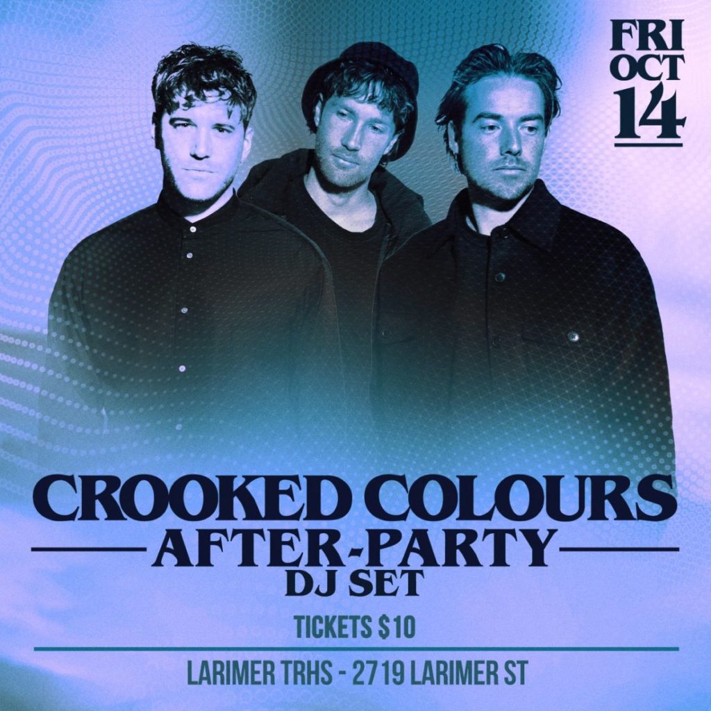 Larimer Lounge presents Croked Colours BBQ (FREE EVENT) on Saturday, October 15 in TRHS — Includes Meet & Greet with Crooked Colours. Proof of purchase to October 14 Ogden show required for entry.