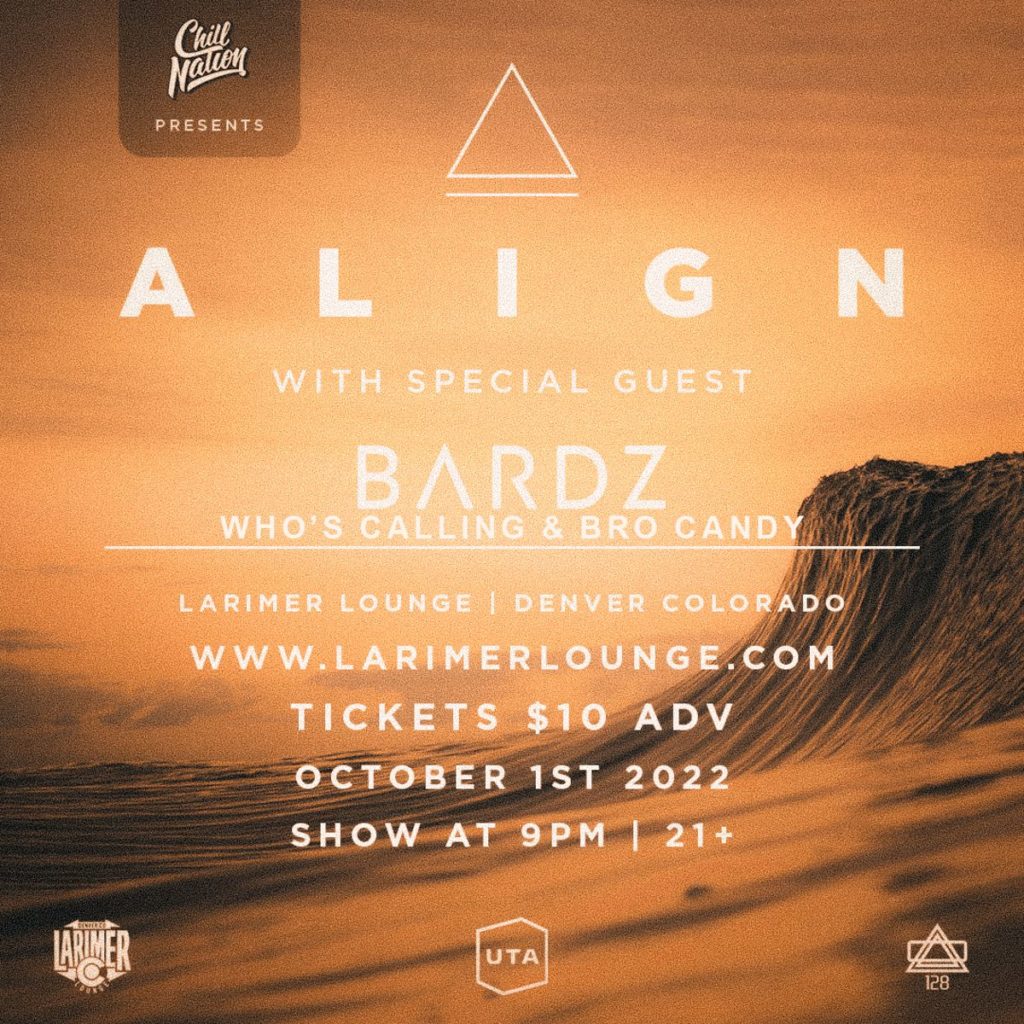 Chill Nation Presents ALIGN with special guest Bardz, Who’s Calling and Bro Candy on Saturday, October 1st –21+